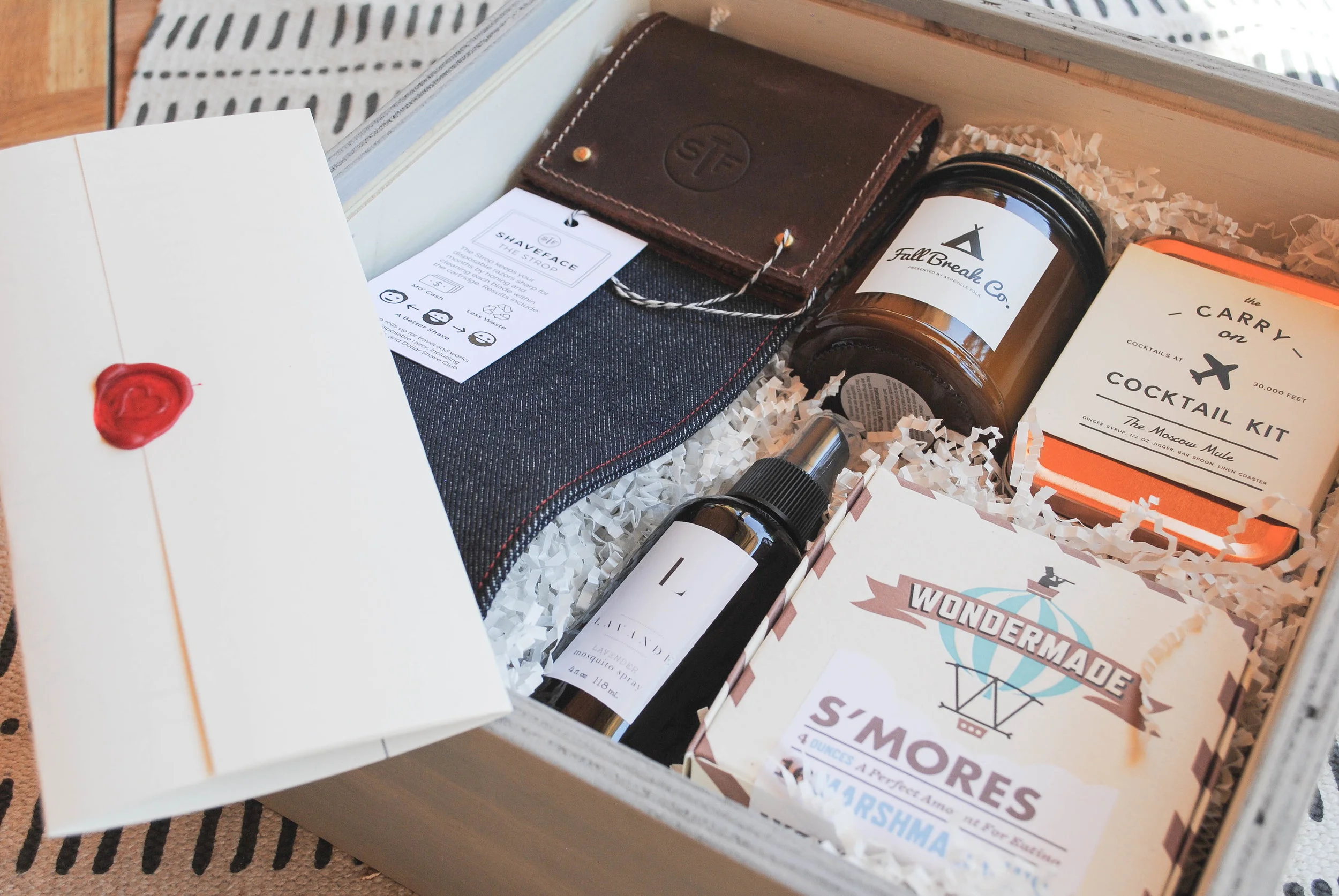 Gift boxes created by the incredibly talented and thoughtful "Linen and Clover"